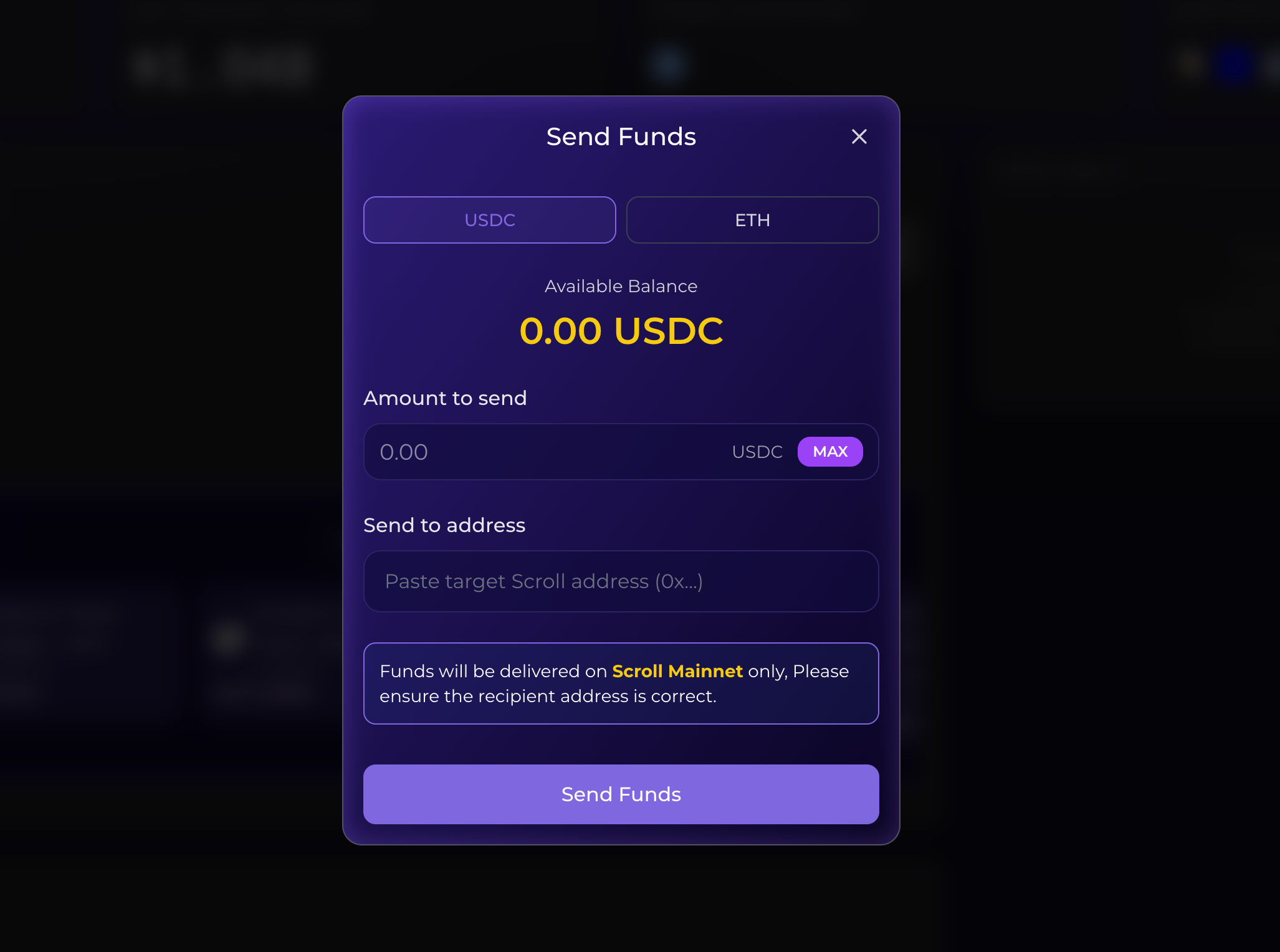 ⚠️ Important: Withdrawals are only on Scroll network. Sending to a wallet on the wrong network will result in permanent loss.